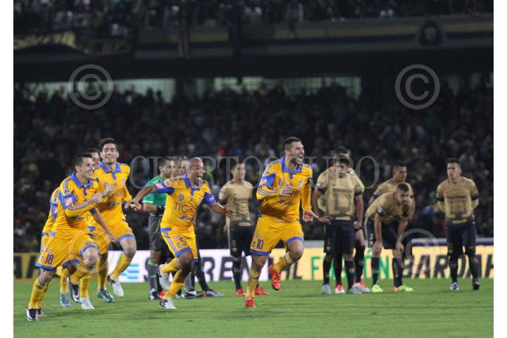MÉXICO, D.F., 13DICIEMBRE2015.- Los Tigres de la Universidad Autónoma de Nuevo León ganan el Torneo Apertura 2015 a los Pumas de la Universidad Autónoma de México en el estadio Olímpico Universitario. FOTO: ADOLFO VLADIMIR /CUARTOSCURO.COM