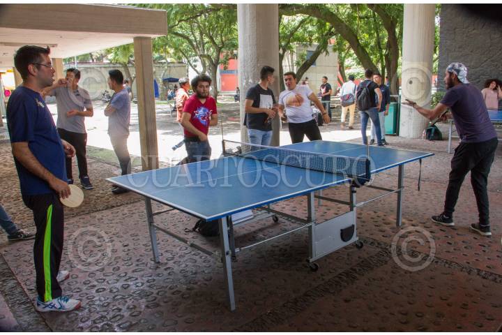 CIUDAD DE MÉXICO 14AGOSTO2019.- Alumnos de la Universidad Autónoma de México aprovechan sus horas libres para para practican ping pong, en los pasillos de la Facultad de Economía. FOTO: ROGELIO MORALES /CUARTOSCURO.COM