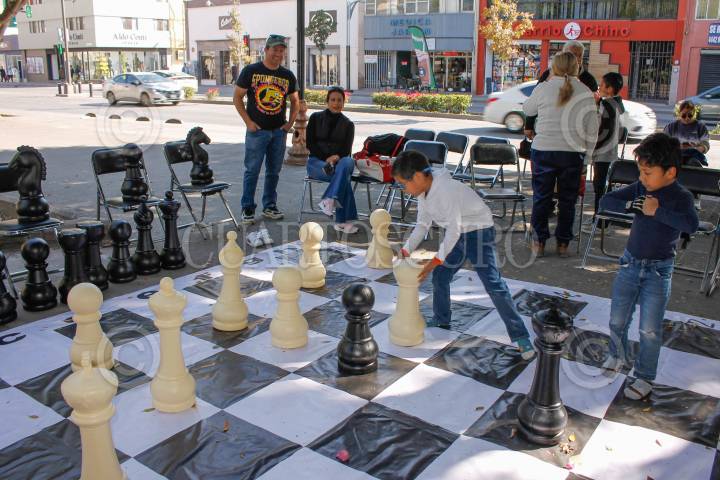 SAN LUIS POTOSÍ, SAN LUIS POTOSÍ, 06ENERO2025- Durante el llamado” Corredor Cultural Carranza” realizaron un torneo de ajedrez con piezas gigantes que atrajo a muchos pequeños apasionados de este deporte. FOTO: MARCELO PALACIOS/CUARTOSCURO.COM