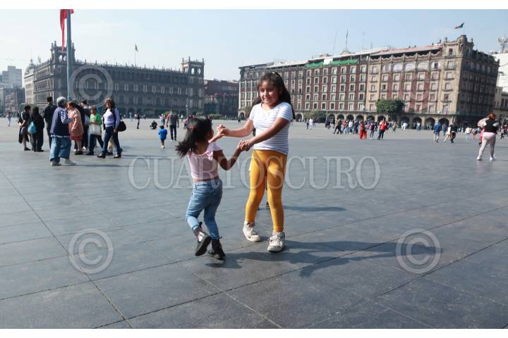 CIUDAD DE MÉXICO, 01FEBRERO2025. Niñas juegan el zócalo de la Ciudad de México. FOTO: EDGAR NEGRETE LIRA/CUARTOSCURO.COM