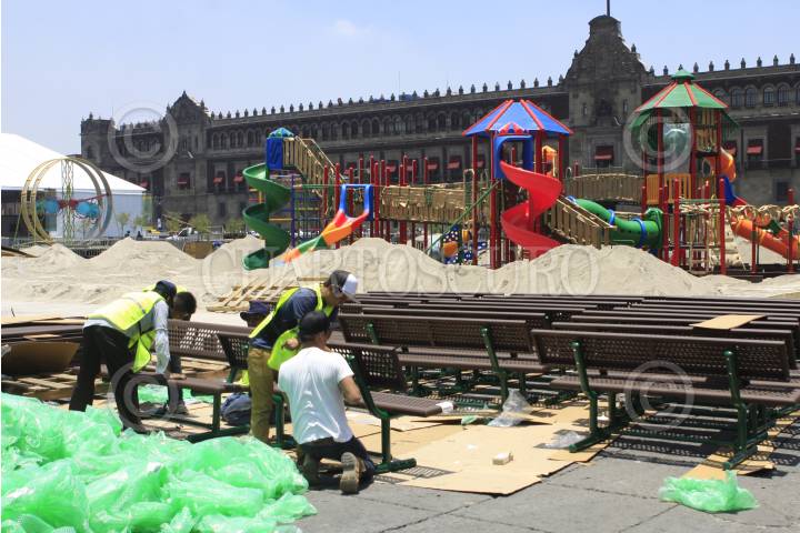 MÉXICO, D.F., 26JULIO2014.- Un complejo de juegos infantiles están siendo colocados en el Zócalo para los niños capitalinos quienes están iniciando su periodo vacacional. FOTO: MOISÉS PABLO /CUARTOSCURO.COM