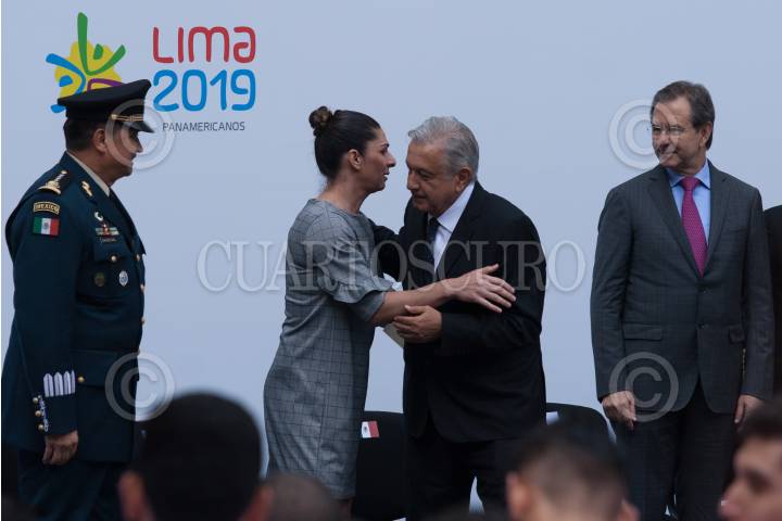 CIUDAD DE MÉXICO, 15JULIO2019.- Andrés Manuel López Obrador, presidente de México, durante el abanderamiento de la Delegación Mexicana para los 18º Juegos Panamericanos de Lima, Perú 2019. FOTO: GALO CAÑAS /CUARTOSCURO.COM