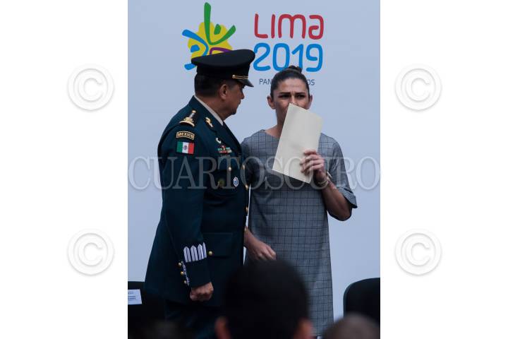 CIUDAD DE MÉXICO, 15JULIO2019.- Luis Cresencio Sandoval, secretario de la Defensa Nacional, y Ana Gabriela Guevara, titular de la Comisión Nacional de Cultura Física y Deporte (CONADE), durante el abanderamiento de la Delegación Mexicana para los 18º Juegos Panamericanos de Lima, Perú 2019. FOTO: GALO CAÑAS /CUARTOSCURO.COM