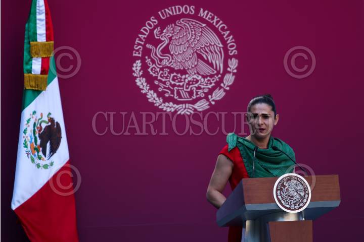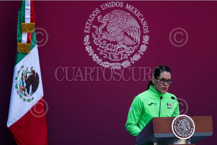 CIUDAD DE MÉXICO, 13AGOSTO2019.- Ana Gabriela Guevara, titular de la Comisión Nacional de Cultura Física y Deporte (CONADE), durante el abanderamiento de la federación mexicana que participara en los Juegos Parapanamericanos de Lima, Perú 2019. FOTO: GALO CAÑAS /CUARTOSCURO.COM