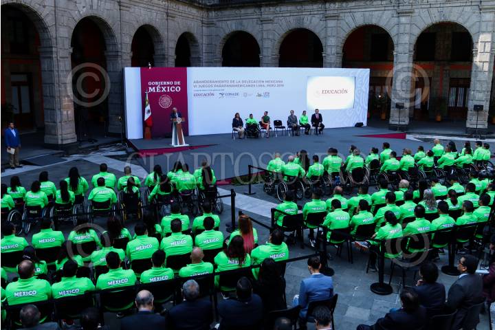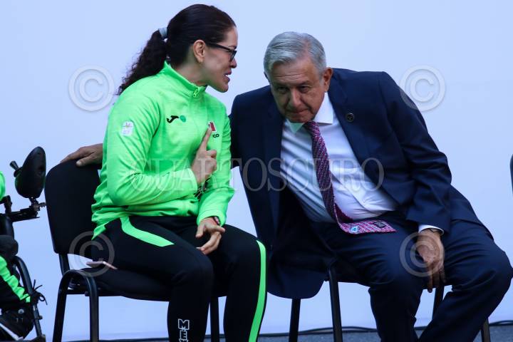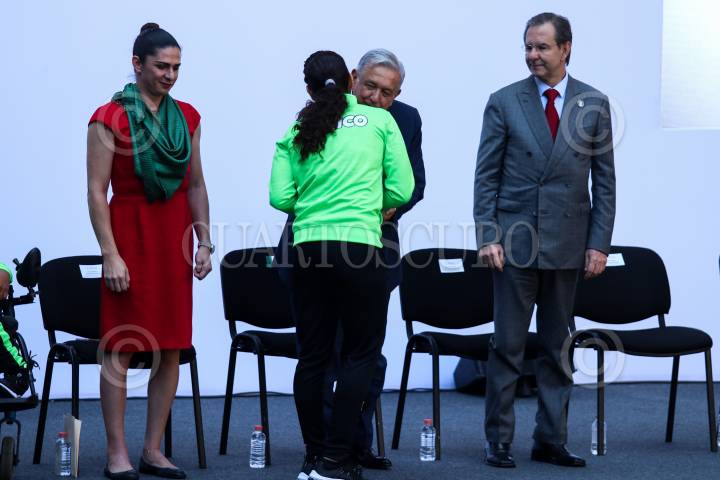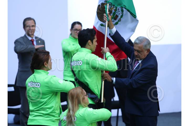 CIUDAD DE MÉXICO, 13AGOSTO2019.- El presidente Andrés Manuel López Obrador encabezó el abanderamiento de la federación mexicana que participara en los Juegos Parapanamericanos de Lima, Perú 2019. FOTO: GALO CAÑAS /CUARTOSCURO.COM