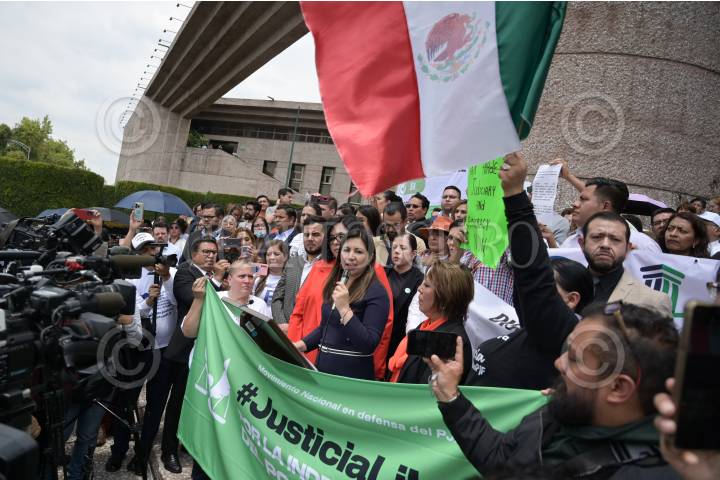 CIUDAD DE MÉXICO, 12JULIO2024. La jueza Juana Fuentes Velazquez fue una de las oradoras en la manifestación a las afueras del Palacio de Justicia con sede en San Lázaro donde se dió un pronunciamiento en contra de la reforma al poder judicial, impulsada por el poder ejecutivo. FOTO: EDGAR NEGRETE LIRA/CUARTOSCURO.COM