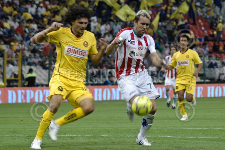 MÉXICO D.F., 09MAYO2009.- Eduardo Coudet de los rayados del Necaxa busca el balón durante el encuentro jugado en contra de las Aguilas del America durante la jornada 17 que ganaron las aguilas 1 - 0 en el estadio Azteca. FOTO: RODOLFO ANGULO/CUARTOSCURO.COM