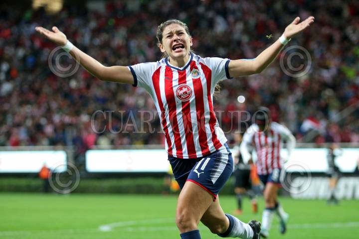ZAPOPAN, JALISCO. 24NOVIEMBRE2017.- Norma Palafox jugadora de celebra su anotación misma que da la ventaja a su equipo, en partido correspondiente a la Final del del Torneo Apertura 2017 de la Liga MX Femenil, en donde se enfrentan los equipos de las Chivas vs Pachuca, en juego que se lleva a cabo en el Estadio Chivas. El marcador al momento es de 3-0 a favor del equipo local. FOTO: FERNANDO CARRANZA GARCIA / CUARTOSCURO.COM