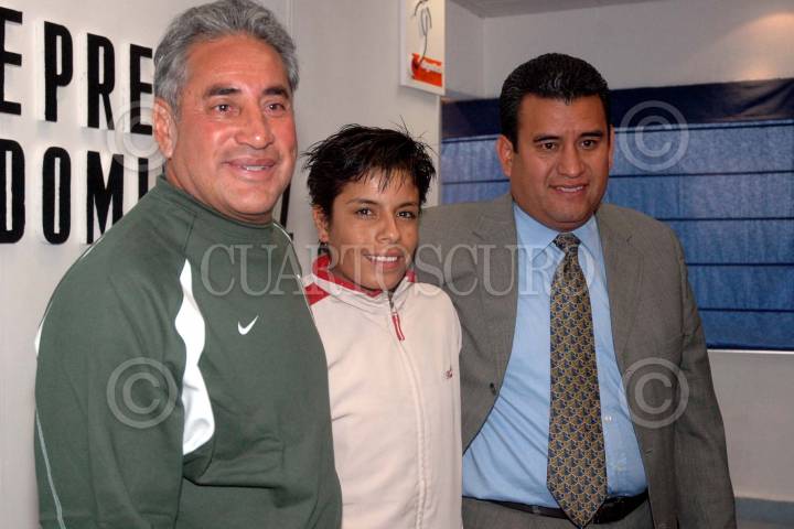 México, D.F., 25ENERO2005.- Maribel Domínguez, jugadora de la selección de fútbol femenil, ofreció una conferencia de prensa entorno a su fichaje en el equipo femenil del FC Barcelona. FOTO: Priscila Sanz/CUARTOSCURO.COM