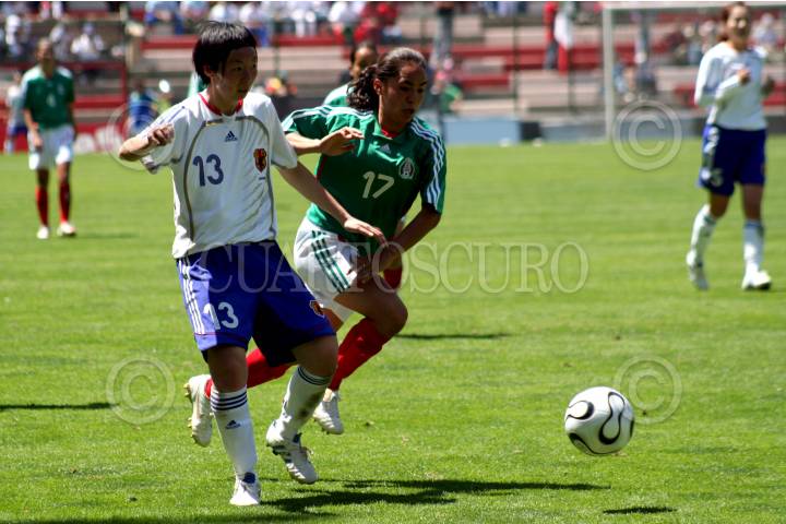 TOLUCA, ESTADO DE MÉXICO, 17MARZO2007.- La delantera mexicana Guadalupe Worbis pelea el balón a la japonesa K. Yano, durante el partido que la Selección Femenil Mexicana de Futbol ganó a su similar de Japón por marcador de 2-1, pero no consiguió su pase al Mundial de China, al terminar 3-2 el marcador global. FOTO: ISAAC ESQUIVEL/CUARTOSCURO.COM