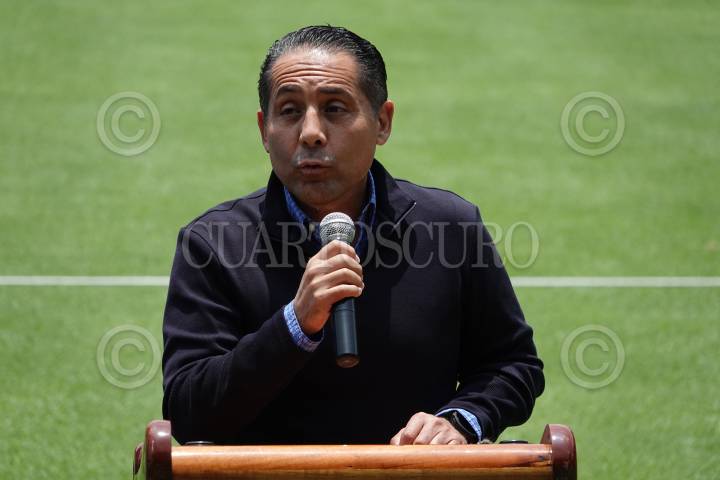 CIUDAD DE MÉXICO, 05JULIO2024.- Antonio Reynoso, Director Administrativo de Cruz Azul, durante la presentación de las nuevas jugadoras en las instalaciones de la Noria. Entre las que destacan: las seleccionadas nacionales Joselin Muñoz y Alejandría Godínez, la estadounidense Opal Curless, la francesa Sarah Huchet, así como la seleccionada uruguaya Sofía Ramondegui. En total el equipo cementero reúne a 11 nuevas jugadoras para el arranque del Apertura Femenil 2024. FOTO: GALO CAÑAS/CUARTOSCURO.COM