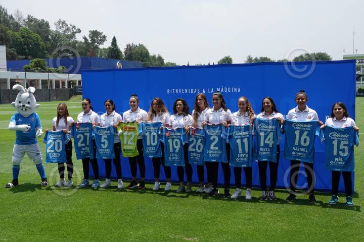 CIUDAD DE MÉXICO, 05JULIO2024.- Las nuevas jugadoras del equipo femenil de Cruz Azul fueron presentadas en las instalaciones de la Noria. Entre las que destacan: las seleccionadas nacionales Joselin Muñoz y Alejandría Godínez, la estadounidense Opal Curless, la francesa Sarah Huchet, así como la seleccionada uruguaya Sofía Ramondegui. En total el equipo cementero reúne a 11 nuevas jugadoras para el arranque del Apertura Femenil 2024. FOTO: GALO CAÑAS/CUARTOSCURO.COM