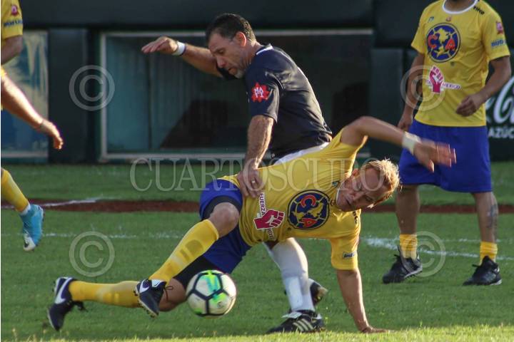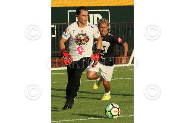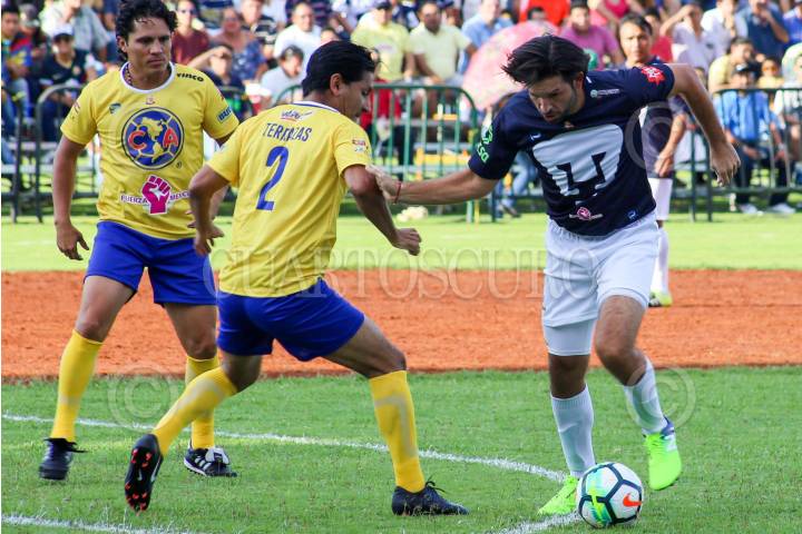 CAMPECHE, CAMPECHE, 14OCTUBRE2017.- Con buena asistencia de aficionados, se celebró el encuentro “Reyes de Leyendas” entre ex jugadores de los pumas de la UNAM y las águilas del América. El partido se realizó en el estadio “Nelson Barrera Romellón” y culmino con empate a dos tantos. FOTO: MARTÍN ZETINA /CUARTOSCURO.COM