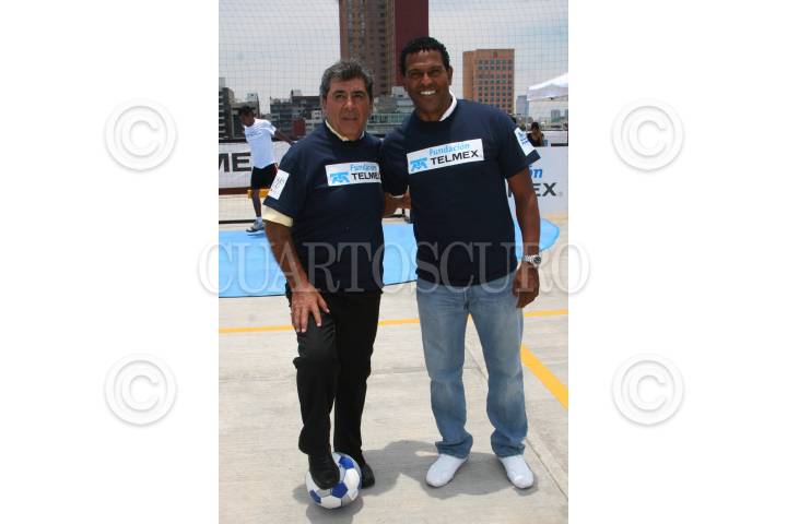 MÉXICO, D.F., 26MAYO2009.- Los futbolistas, Carlos Santos y Carlos Reynoso posan para la foto durante la inauguración de la Copa Telmex que este año se jugaran en Yucatan. FOTO: RICARDO CASTELAN/CUARTOSCURO.COM