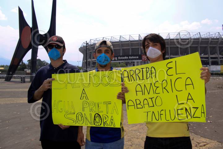 MÉXICO D.F., 26ABRIL2009.- Debido a que el día de hoy el America jugó a puerta cerrada al público algunos aficionados acudieron a las aferas del estadio a brindar apoyo a su equipo FOTO: SÁSHENKA GUTIÉRREZ/CUARTOSCURO.COMM