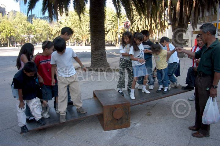 MÉXICO D.F. 25DICIEMBRE2006.- Aprovechando el día, festivo la gente recorre la avenida Reforma y aprovecha para descansar en las bancas de la exposición "Dialogo de Bancas" que se encuentra en esta avenida. En la imagen niños juagan sobre una de las bancas de la exposición. FOTO: GUILLERMO PEREA/CUARTOSCURO.COM