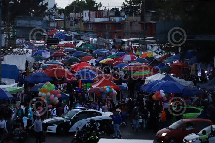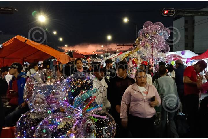 CIUDAD DE MÉXICO, 05ENERO2025.- Dos personas venden globos durante la venta de regalos para Reyes Magos. FOTO: DANIEL AUGUSTO/ CUARTOSCURO.COM