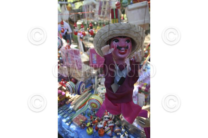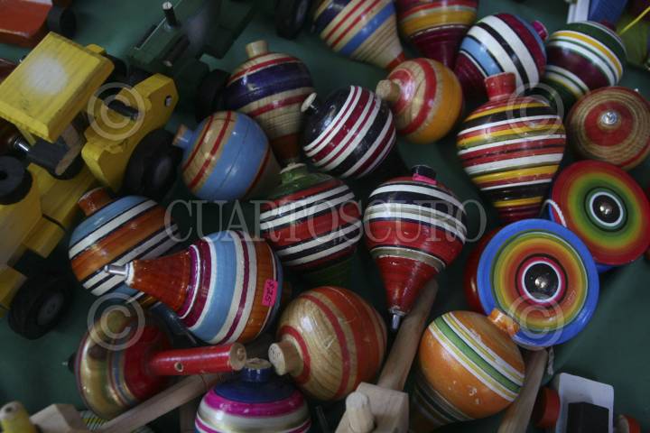 OAXACA, OAXACA, 05ENERO2013.- Los avances tecnológicos y los nuevos modelos de juguetes han dejado en el olvido los juguetes clásico, hechos a base de madera, los cuales difícilmente compiten contra los que se ofrecen actualmente en los super mercados. Trompos, títeres, valeros, entre otros son desplazados y difícilmente se venden, acusaron comerciantes que se resisten a dejar la tradición familiar. FOTO: ARTURO PÉREZ ALFONSO /CUARTOSCURO.COM