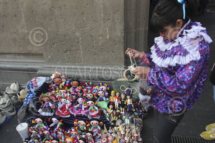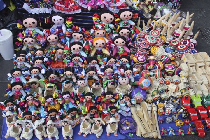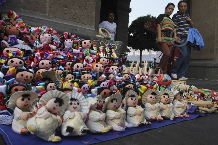 MÉXICO, D.F., 04ENERO2013.- Muñecos elaborados por artesanos mexicanos, son vendidos por vendedores ambulantes en calles del centro histórico. Dichas artesanías son rebasadas en ventas por juguetes de plásticos principalmente importados de China y Corea. FOTO: SAÚL LÓPEZ /CUARTOSCURO.COM