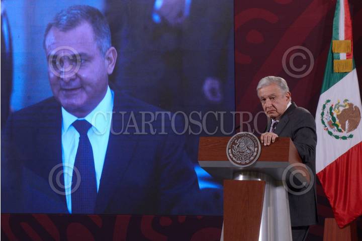 Andrés Manuel López Obrador, presidente de México, encabezó conferencia de prensa matutina en Palacio Nacional, en la que habló sobre la resolución del juicio de Genaro García Luna, ex secretario de Seguridad Pública.