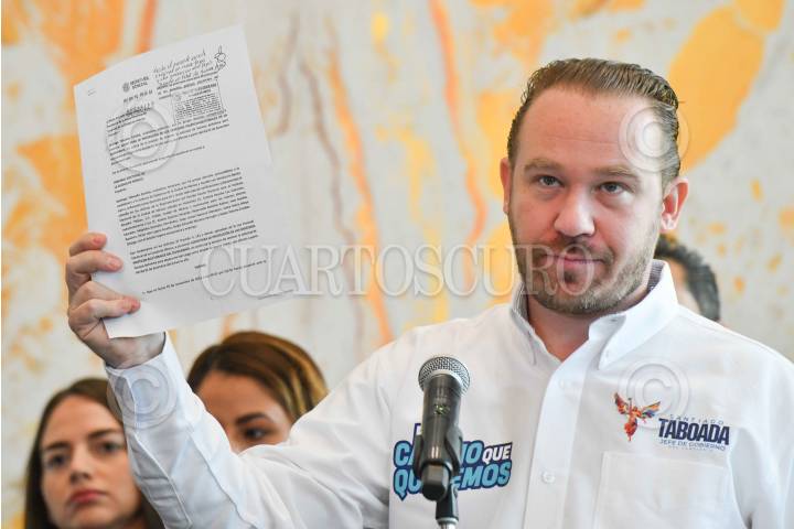 CIUDAD DE MÉXICO, 01DICIEMBRE2023.- Santiago Taboada, precandidato a la jefatura de Gobierno de la capital por el Frente Amplio por México, ofreció conferencia de prensa en la que presentó juicio por vulneración a sus derechos electorales en contra de legisladores de Morena a quienes acusó de buscar impedir su candidatura luego de suspender la sesión del congreso local en la que se tenía contemplada aprobar la licencia definitiva como a su cargo como Alcalde de Benito Juárez. FOTO: MARIO JASSO/CUARTOSCURO.COM