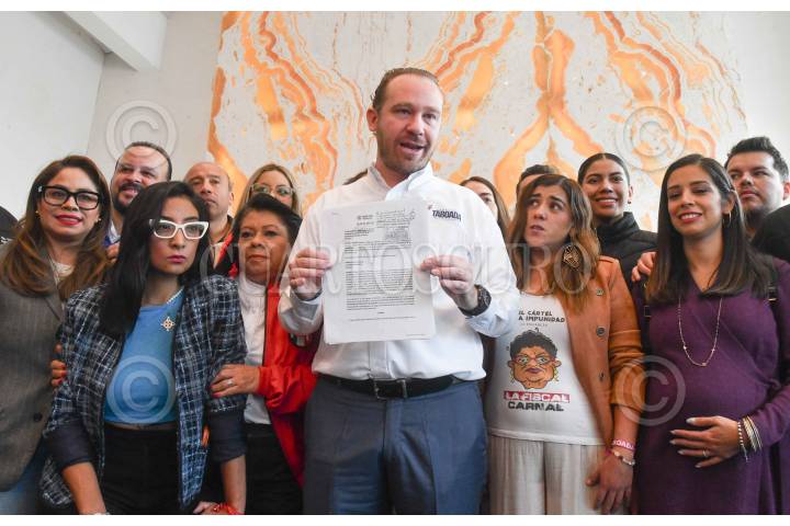 CIUDAD DE MÉXICO, 01DICIEMBRE2023.- Santiago Taboada, precandidato a la jefatura de Gobierno de la capital por el Frente Amplio por México, en compañía de legisladores del Congreso de la Ciudad de México, ofreció conferencia de prensa en la que presentó juicio por vulneración a sus derechos electorales en contra de legisladores de Morena a quienes acusó de buscar impedir su candidatura luego de suspender la sesión del congreso local en la que se tenía contemplada aprobar la licencia definitiva como a su cargo como Alcalde de Benito Juárez. FOTO: MARIO JASSO/CUARTOSCURO.COM