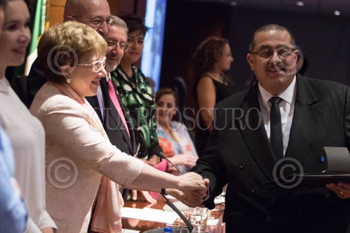 CIUDAD DE MÉXICO, 06MARZO2017.- Luis María Aguilar, presidente de la Suprema Corte de Justicia de la Nación acompañados de magistrados del Poder Judicial de la Federación, entregaron reconocimientos a la magistrada Nora Elizabeth Urby y al magistrado , Mario de la Huerta Portillo, e inauguraron la exposición "Diosas Mujeres Profanas" del artista Federico Kampf, como parte del festejo de día internacional de la mujer. FOTO: SAÚL LÓPEZ /CUARTOSCURO.COM
