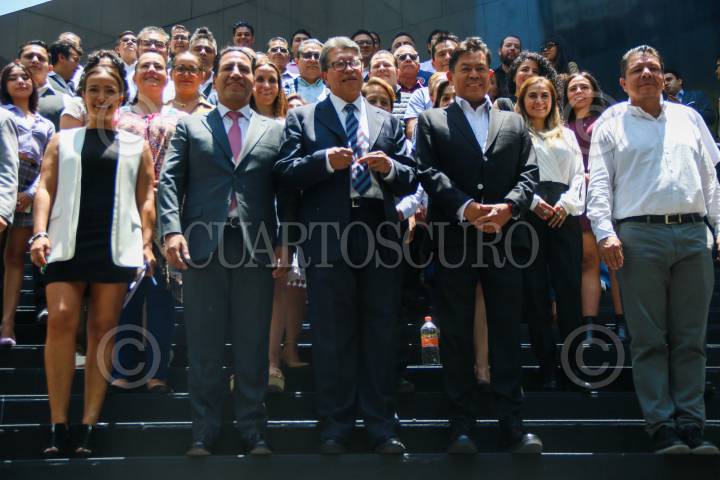 CIUDAD DE MÉXICO, 31 de agosto de 2025.– Integrantes de la Junta de Coordinación Política (Jucopo), encabezada por Ricardo Monreal Ávila, ofrecieron una conferencia de prensa esta noche, en la que hablaron sobre los acuerdos para conformar la Mesa Directiva de la Cámara de Diputados. FOTO: CUARTOSCURO.COM