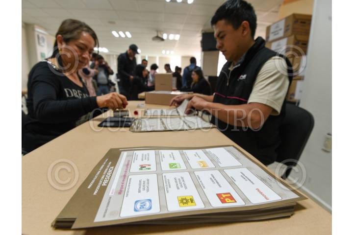 TOLUCA, ESTADO DE MÉXICO, 15ABRIL2024.- A la Junta Local del INE en el Edoméx llegó el material electoral para que las Personas Prisión Preventiva puedan emitir su voto, que estarán siendo distribuidos a los distritos electorales que cuentan con Centro Penitenciario, y a diferencia del proceso anterior si se entintará el dedo de los electores; fueron selladas cada una de las boletas, dando un total de 5067 boletas, y podrán emitir su voto del 6 al 13 de mayo, en los 20 centros penitenciarios del Edoméx, y en esta ocasión participa el CEFERESO del Altiplano. FOTO: CRISANTA ESPINOSA AGUILAR/ CUARTOSCURO.COM