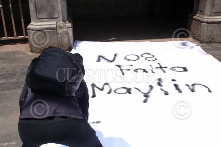 CUERNAVACA, MORELOS, 07SEPTIEMBRE2025.- La madre de Andrea Maylin Chino Ramos de 22 años protesta en los portales del Palacio de Gobierno exigiendo justicia en el feminicidio de su hija. La joven fue reportada como desaparecida el pasado 20 de junio en el municipio de Yautepec y era madre de una niña de año y medio de edad y presuntamente fue asesinada por su pareja sentimental el cual la inhumo en un terreno de Yautepec. Los padres de la victima acusan falta de profesionalismo de la Fiscalía de Justicia ya que no han clasificado el caso como feminicidio, además de tratar de encubrir al asesino y su familia, también exigen una audiencia con la gobernadora. FOTO: MARGARITO PÉREZ RETANA/CUARTOSCURO.COM