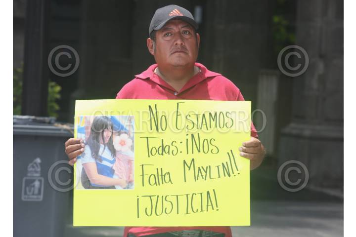 CUERNAVACA, MORELOS, 07SEPTIEMBRE2025.- El padre de Andrea Maylin Chino Ramos de 22 años protesta en los portales del Palacio de Gobierno exigiendo justicia en el feminicidio de su hija. La joven fue reportada como desaparecida el pasado 20 de junio en el municipio de Yautepec y era madre de una niña de año y medio de edad y presuntamente fue asesinada por su pareja sentimental el cual la inhumo en un terreno de Yautepec. Los padres de la victima acusan falta de profesionalismo de la Fiscalía de Justicia ya que no han clasificado el caso como feminicidio, además de tratar de encubrir al asesino y su familia, también exigen una audiencia con la gobernadora. FOTO: MARGARITO PÉREZ RETANA/CUARTOSCURO.COM