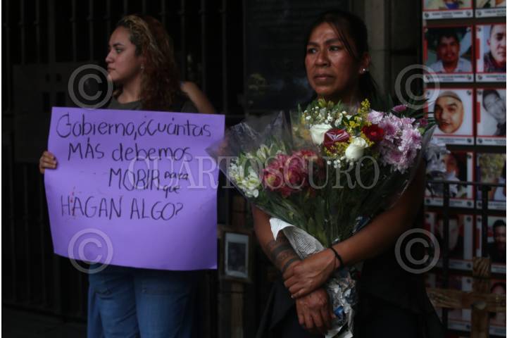 TOLUCA, ESTADO DE MÉXICO, 10SEPTIEMBRE2025.- Familiares de víctimas de feminicidio de diversos municipios del Estado se México con mantas de fotografías de sus víctimas se manifestaron frente a Palacio de Gobierno para exigir justicia ante el nulo avance en sus casos por parte de las autoridades, buscan que el gobierno estatal garantice se haga justicia a sus familiares y se dejen las simulaciones de las cuales ya están cansados. FOTO: CRISANTA ESPINOSA AGUILAR/CUARTOSCURO.COM