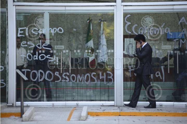 MÉXICO, D.F., 05OCTUBRE2014.- Campesinos protestaron en la Secretaria de Economía para exigir precios justos. Un comité de campesinos después de manifestarse fueron recibidos en la secretaria para dialogar sobre sus demandas. FOTO: ISABEL MATEOS /CUARTOSCURO.COM