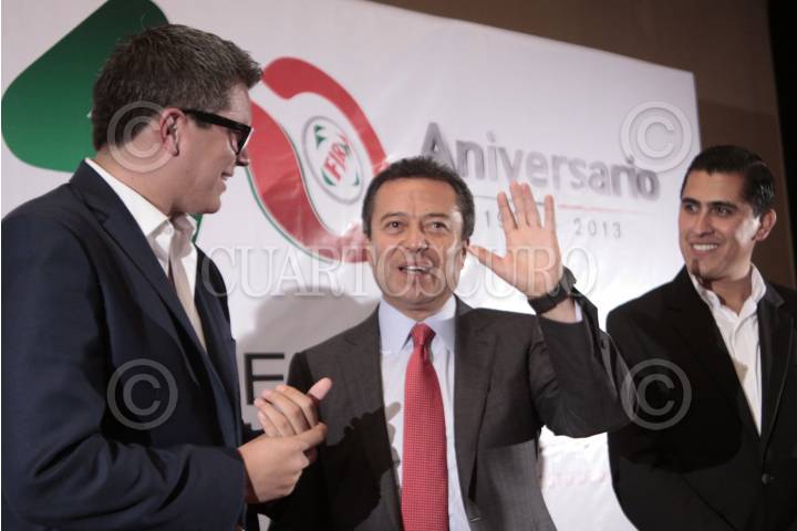 MÉXICO, D.F., 12AGOSTO2013.- Christopher James Baraousse, dirigente nacional juvenil del PRI, y César Camacho Quiroz, presidente nacional del PRI, acudieron al Foro "La Participación de los Jóvenes como Agentes Transformadores" en el marco de la celebración del Día Internacional de la Juventud. FOTO: IVÁN STEPHENS /CUARTOSCURO.COM