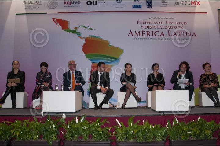 CIUDAD DE MÉXICO, 29NOVIEMBRE2016.- José Manuel Romero Coello, director general del Instituto Mexicano de la Juventud (IMJUVE), y Rosario Robles Berlanga, secretaria de Desarollo Agrario, Territorial y Urbano (SEDATU) , presidieron el encuentro internacional "Políticas de Juventud y Desigualdades en América Latina". Mencionaron que actualmente existen 140 millones de jóvenes entre 15 a 29 años de edad en America Latina; de los cuales, se estima que uno de cada cuatro viven en situaciones de pobreza extrema. FOTO: PAULINA NEGRETE /CUARTOSCURO.COM