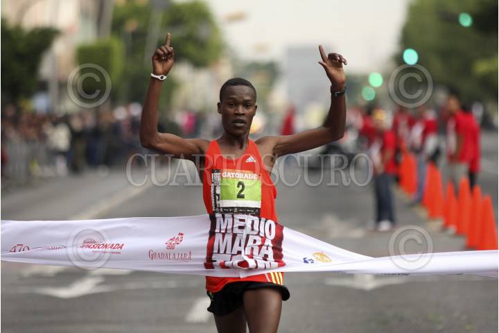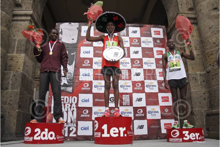 GUADALAJARA, JALISCO, 19FEBRERO2012.- Guadalajara, Jalisco. 19FEBRERO2012.- Se llevo a cabo el Medio Maratón Guadalajara 2012 en donde se recorrieron 21 KM por calles de esta ciudad. En la rama Varonil los Kenianos dominaron el podio llevándose el Julius Kipyego Keter, Shadrack Kipkorir Kiyai y Stephen Mburi Njoroge respectivamente. FOTO: FERNANDO CARRANZA GARCIA/CUARTOSCURO.COM