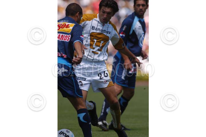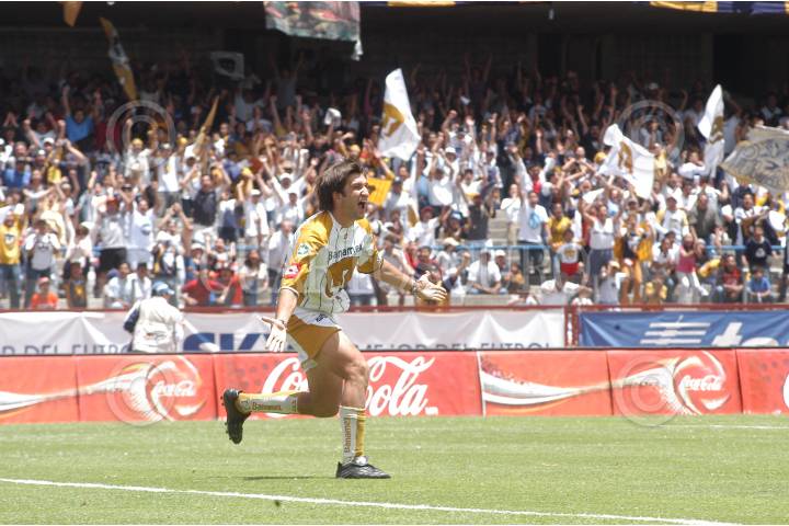 MEXDF11ABRIL2004.- La figura del encuentro fue Francisco "Kikín" Fonseca, quien fue el anotador de los 3 goles. Los Pumas se impusierón tres tantos a cero a los Camoteros del Puebla, en la cancha del estadio México 68. FOTO: Germán Romero/CUARTOSCURO.COM