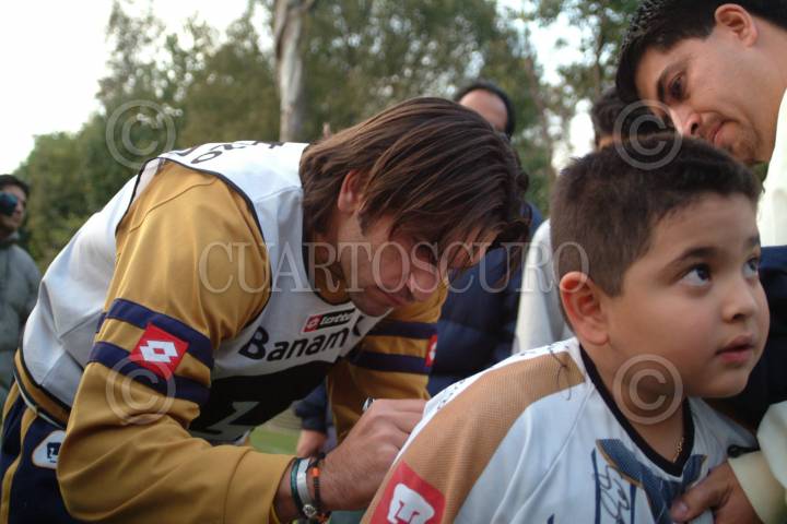 MEXICO, D.F. 28DICIEMBRE2004.- Francisco "Kikín" Fonseca, delantero de los Pumas de la UNAM, firmó autógrafos a sus seguidores al finalizar el entrenamiento de su equipo. FOTO: Iván Stephens/CUARTOSCURO.COM