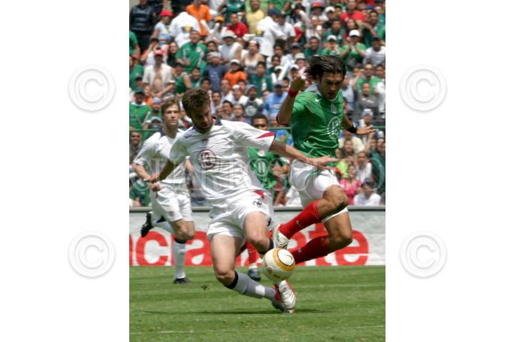 MEXICO, D.F. 27MARZO2005.- Francisco "Kikín" Fonseca disputó un balón con el jugador de Estados Unidos en el partido de la continuación del hexagonal de la eliminatoria mundialista CONCACAF Copa del Mundo Alemania 2006 en el estadio Azteca. FOTO: Iván Stephens/CUARTOSCURO.COM