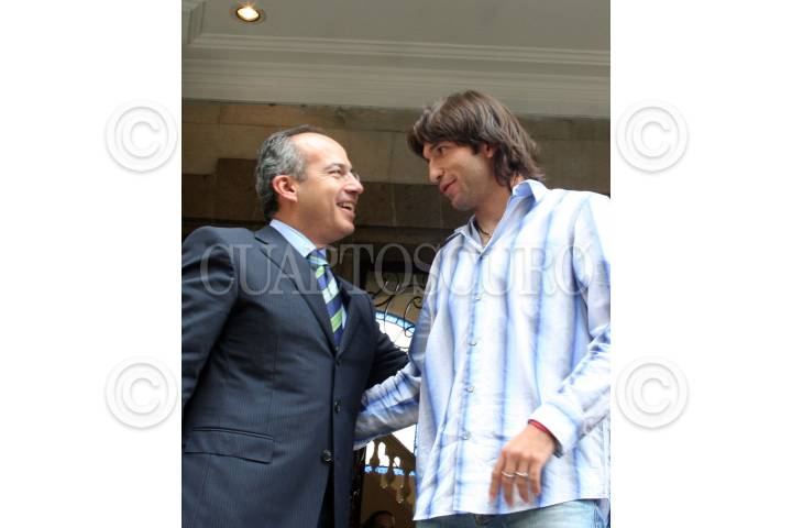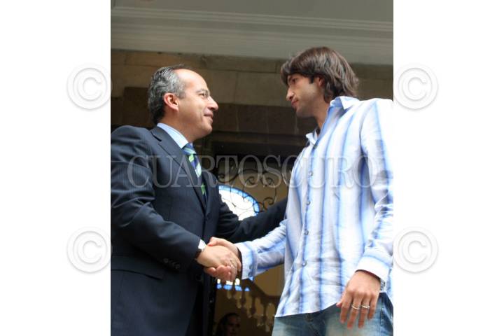 MÉXIC,O D.F. 01SEPTIEMBRE2006.- El futbolista Francisco "Kikin" Fonseca visitó al candidato panista a la Presidencia de la República, Felipe Calderón, antes de su partida al futbol de Portugal. FOTO: Alfredo Guerrero/CUARTOSCURO.COM