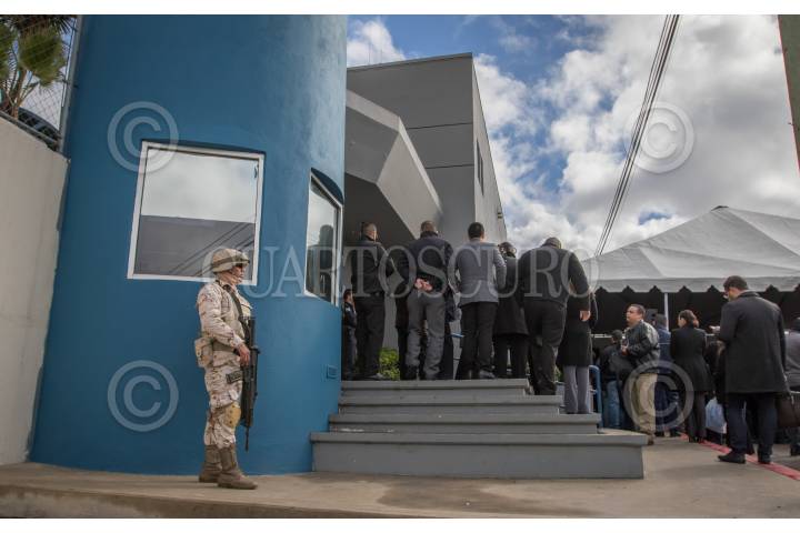 TIJUANA, BAJA CALIFORNIA, 04ENERO2016.- Con la presencia del gobernador del Estado, Francisco "Kiko" Vega de la Madrid, acompañado del alcalde de Tijuana, Jorge Astiazarán, se realizó la inauguración de las oficinas del Centro de Evaluación y Control de Confianza. El edificio está ubicado en la delegación de Otay y servirá para realizar exámenes de confianza a elementos de las diversas corporaciones. FOTO: CHRISTIAN SERNA /CUARTOSCURO.COM