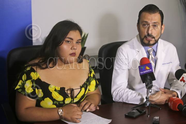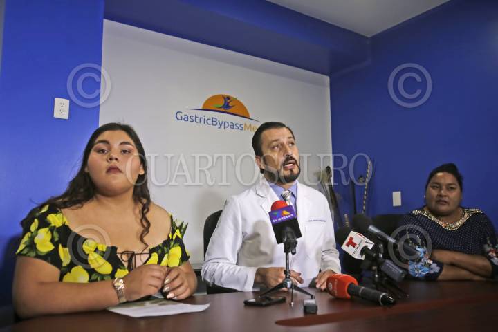 ZAPOPAN, JALISCO. 14JUNIO2017.- Conferencia de Prensa en la clínica Gastric Bypass México, con el Doctor José Antonio Castañeda y con quien hasta hace algunos meses fuera la adolecente mas obesa con 195 kilogramos de peso y quince años de edad, Dayana Camacho quien el pasado septiembre fue sometida a una cirugía de bypass gástrico, logro erradicar su obesidad y actualmente su peso oscila entre los 100 kilos. FOTO: FERNANDO CARRANZA GARCIA / CUARTOSCURO.COM