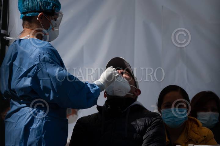 Un hombre se realiza la prueba de antígenos para detectar Covid-19 en el Hospital Carlos Mac Gregor en el sur de la ciudad.