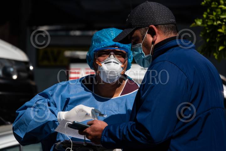 Personal médico durante toma de muestra para la detección dé COVID-19.