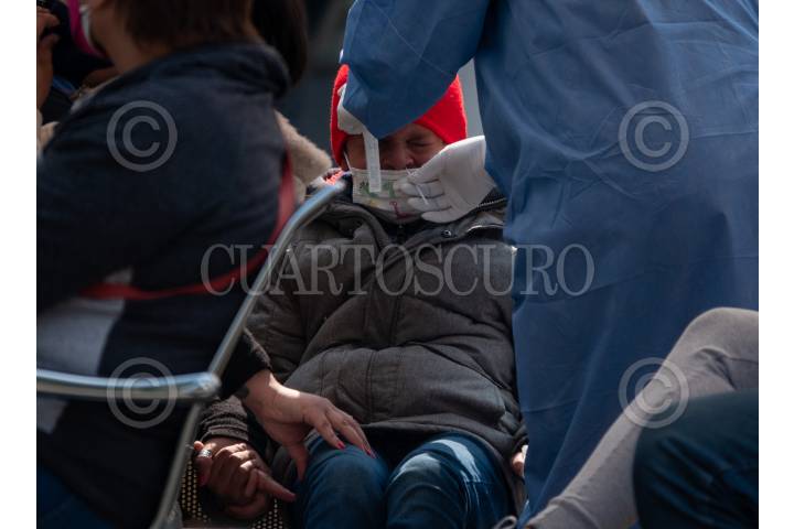 Un médico da información a las personas que permanecen formadas para realizarse una prueba covid-19 en el Hospital Carlos Mac Gregor en el sur de la ciudad.