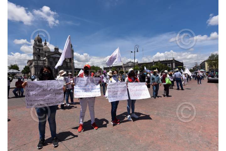 Maestros integrantes de la Coordinadora de Escuelas Democráticas en el Estado de México CEDEM exigieron un regreso a clases seguro y consideraron una burla el kit de limpieza otorgado por Gobierno del Estado.