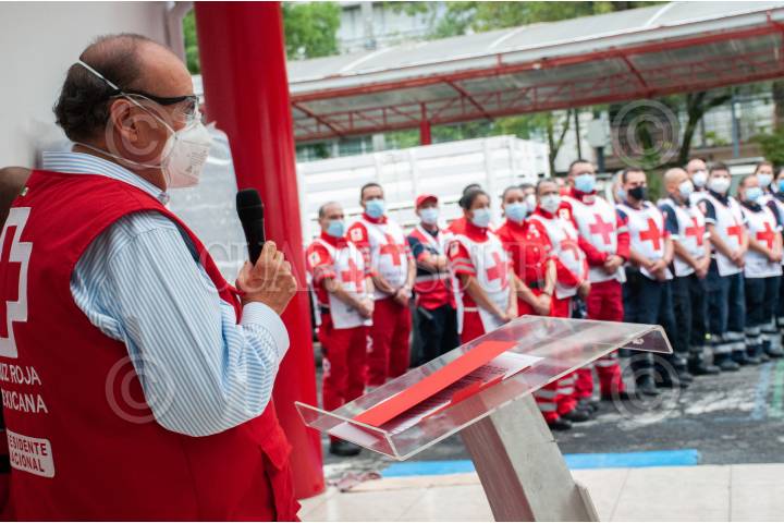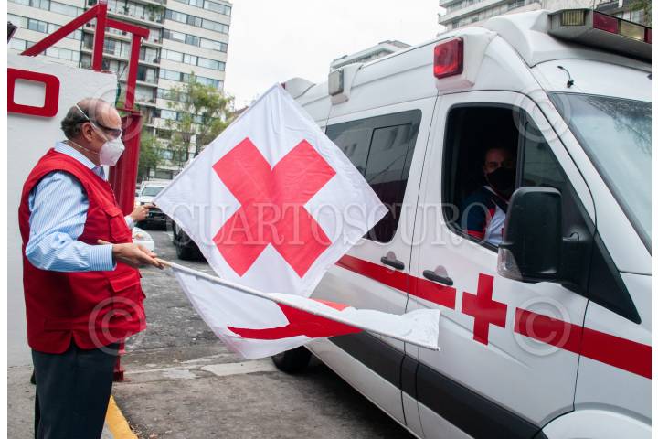 Fernando Suinaga, dió el banderazo de salida a los vehículos de la Cruz Roja que repartirán los kits a los damnificados del sismo de 2017