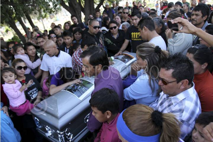MONTERREY, NUEVO LEÓN, 30ENERO2013.- Decenas de personas acudieron al panteón municipal San Jorge a despedir a Javier Flores Valerio de 20 años de edad quien fuera trompetista de la banda y a José Rodríguez Rostro, quien tocaba los timbales en el grupo musical. FOTO: GABRIELA PÉREZ MONTIEL /CUARTOSCURO.COM