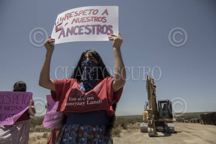 Indigenas de la comunidad Kumiai protestan por la posible destrucción de sus zonas sagradas tras construcción del muro fronterizo