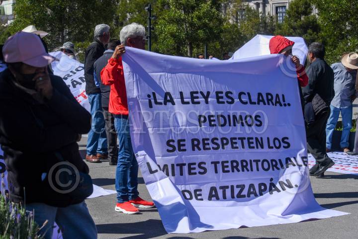 TOLUCA, ESTADO DE MÉXICO, 15NOVIEMBRE2023.- Habitantes del municipio de Santa Cruz Atizapán se manifestaron en la Cámara de Diputados local en donde pidieron su intervención para que se respeten los límites territoriales de este municipio ante el abuso de autoridad y diversas irregularidades por parte de funcionarios del municipio vecino de Almoya del Río. FOTO: CRISANTA ESPINOSA AGUILAR /CUARTOSCURO.COM